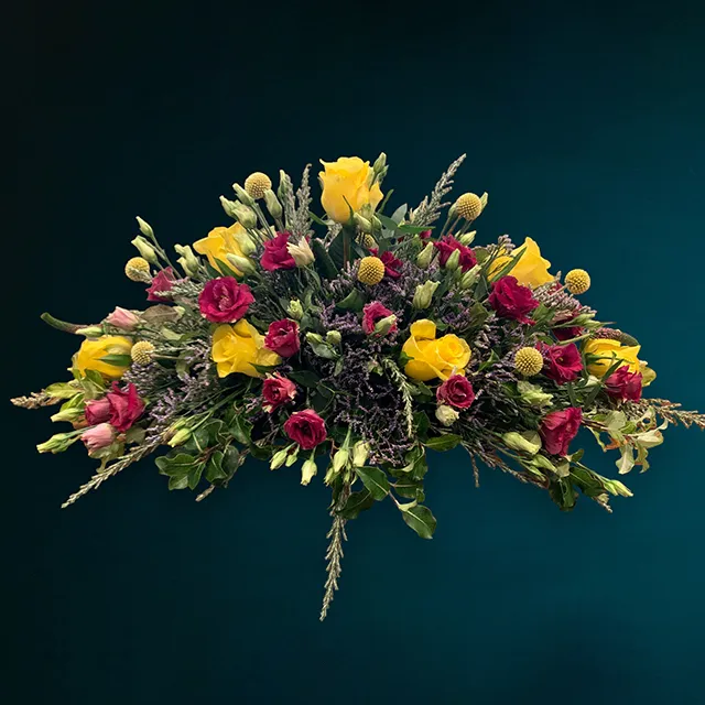 | Coffin Sprays | Deluxe Coffin Spray – white, Deluxe Coffin Spray – pink and purple, Regular Coffin Spray – white, Regular Coffin Spray – pink and purple, Regular Coffin Spray – yellow and orange, Deluxe Coffin Spray – yellow and orange |