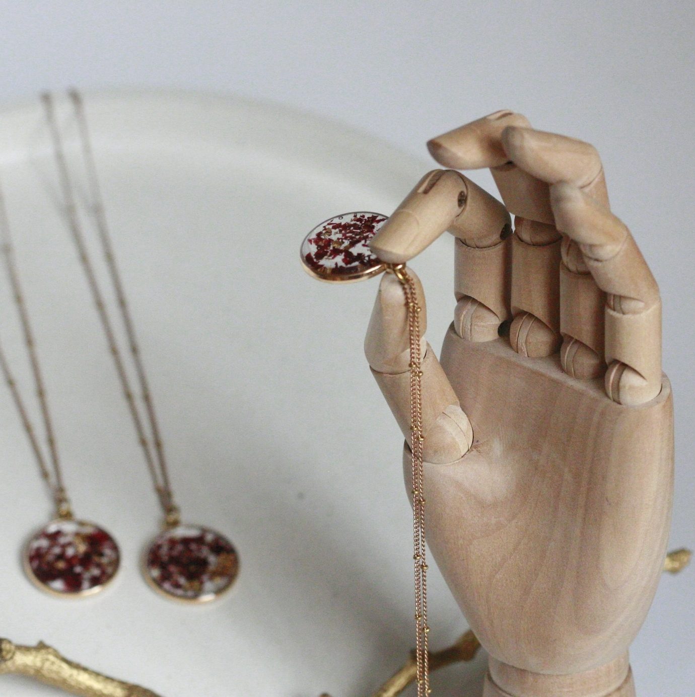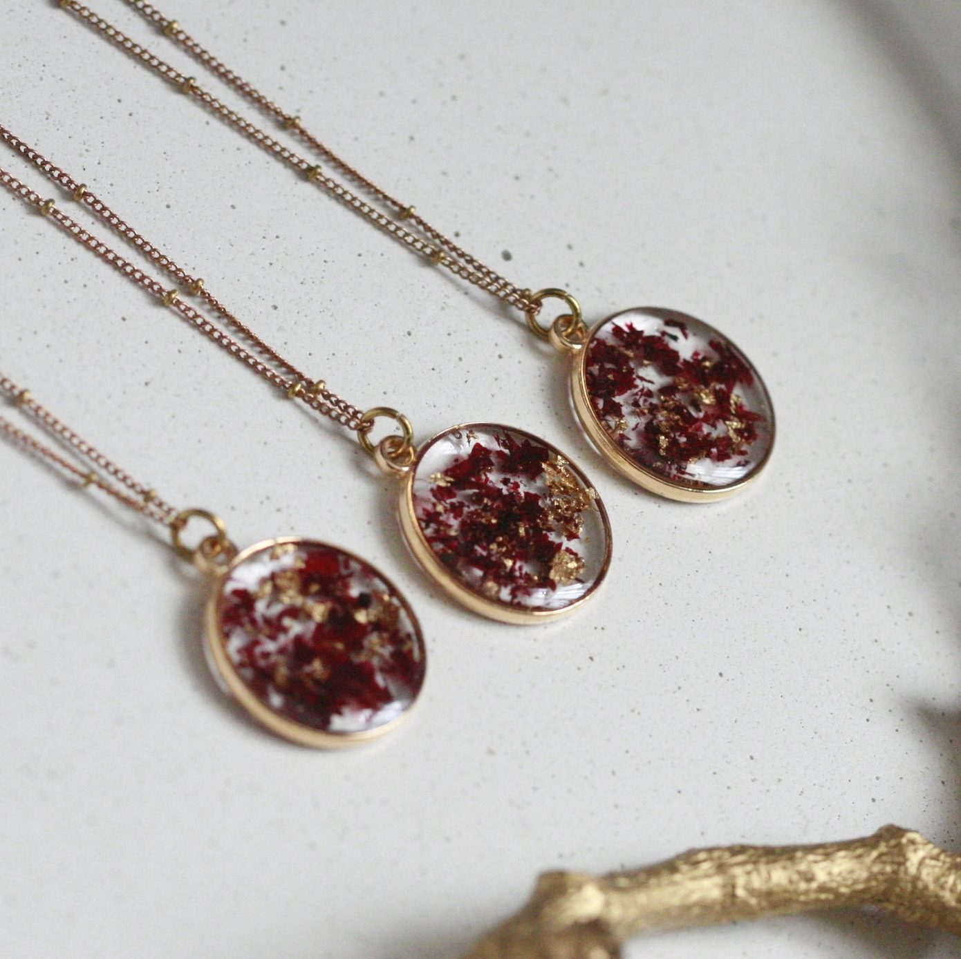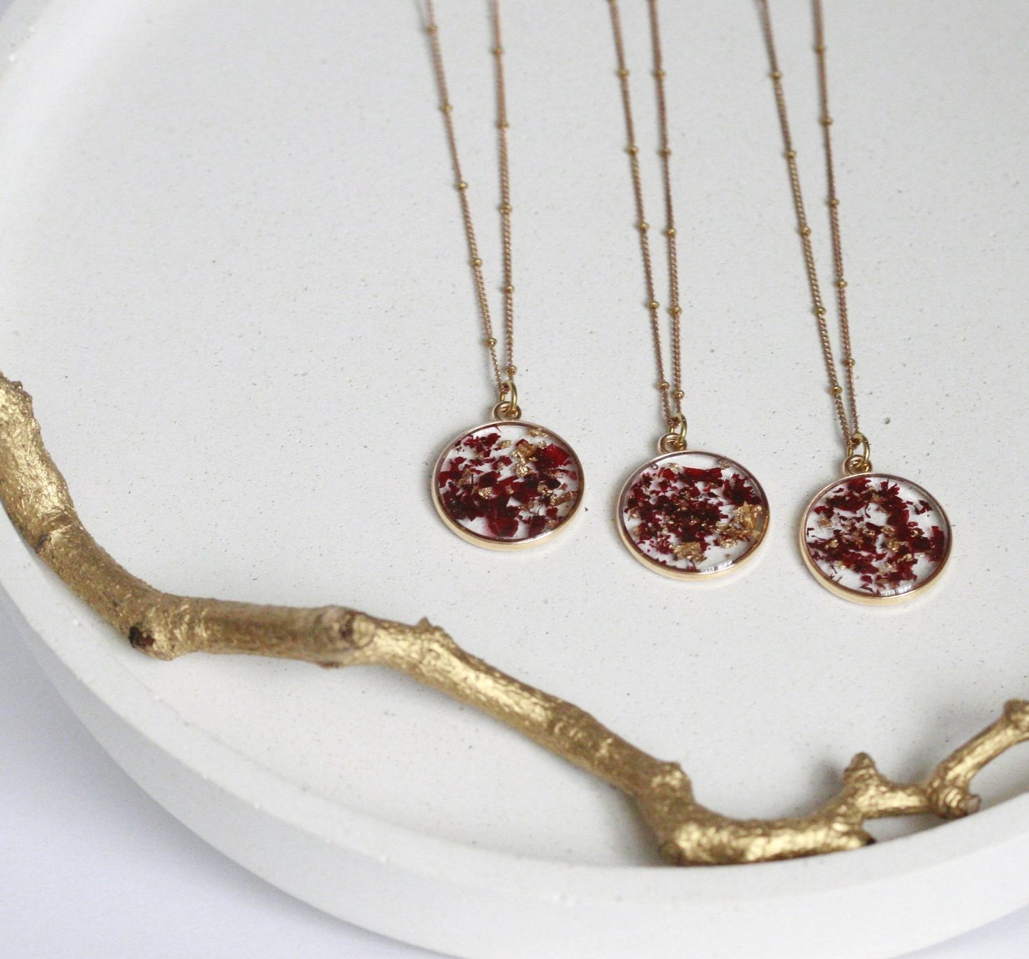 - Natural Elegance: Features real rose petals and gold leaf, meticulously preserved in clear resin to create a one-of-a-kind, nature-inspired pendant.