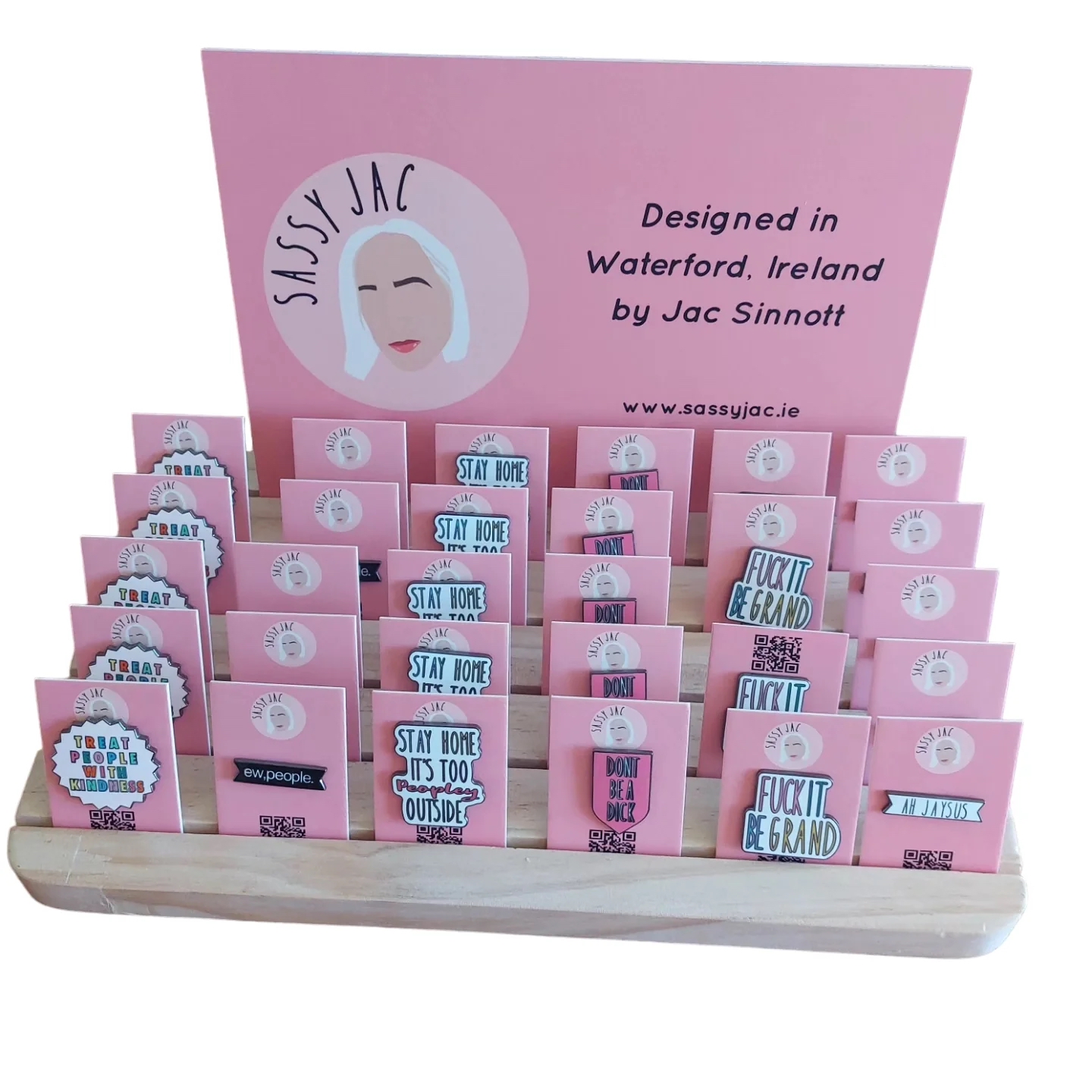 Sassy Jac Pins are eye-catching enamel and metal accessories designed by Irish illustrator Jac Sinnott in Tramore, Co. Waterford. Part of the beloved Sassy Jac range, these pins combine quirky messages, bold colours and clever design to deliver attitude and charm wherever they’re clipped — on jackets, bags, hats or scarves. Ideal for those who want to add confidence, humour or a splash of sass to their look, each pin reflects the brand’s distinctive voice and personality.